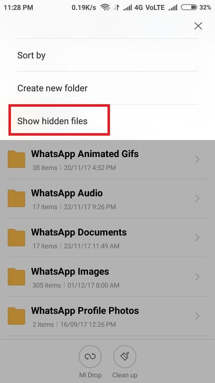 If your phone doesn’t have option to show hidden folder then you can Download WhatsApp Status Video Photo to Gallery using android app ES File Explorer File Manager and File Manager