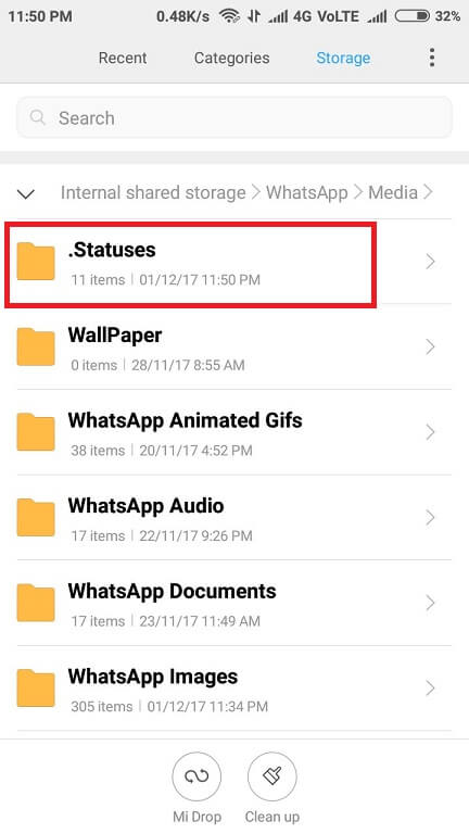 Steps to unhide .Statuses folder to save whatsapp statuses